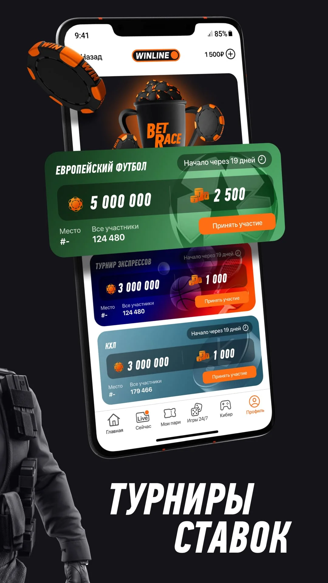 Откройте приложение Winline на смартфоне.