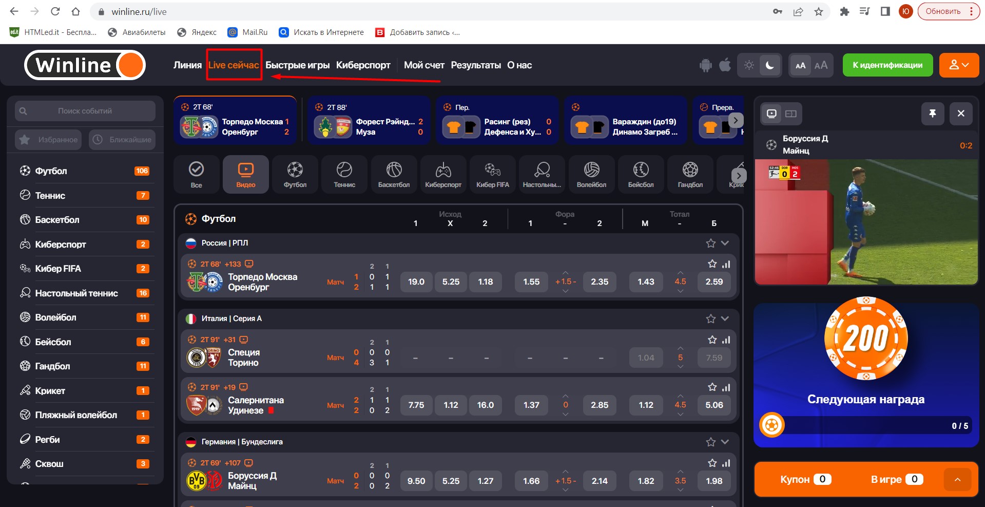 Чтобы запустить онлайн трансляцию на официальном сайте БК Винлайн, необходимо: